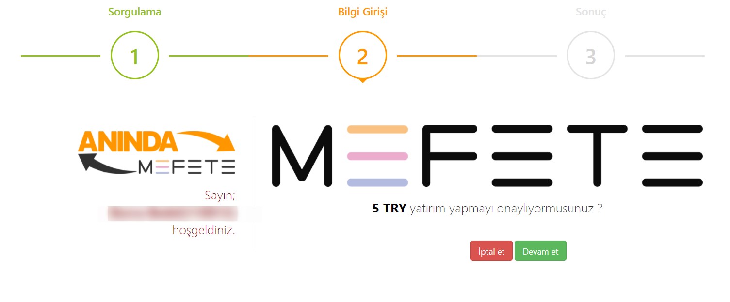 İkinci Aşamada 5 TL yatırım yapmayı onaylıyor musunuz? diye Onay ekranı karşımıza çıkacaktır. Bu aşamada Devam et butonuna tıklamanız gerekmektedir. Hemen ardından yine 2. aşamanın içerisinde olan yeni bir sayfa karşımıza çıkacaktır. Funbahis Mefete Para Yatırma Bilgi girişi aşaması. Bu kısımda istenen bilgileri eksiksiz doldurmanız gerekmektedir.